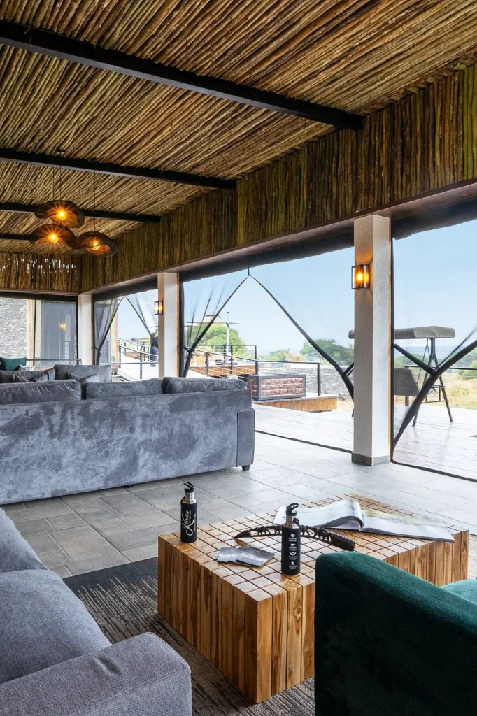 The luxury lodge, Mwiba, has only eight tented suites. Each tented suite overlooks a rocky gorge. The airy, spacious Mwiba Lodge tents have floor-to-ceiling windows and spacious bathrooms with copper accents. You can access the Mwiba Lodge’s full-service spa, expansive lounge, and infinity pool.